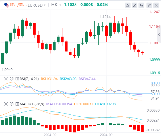 如果整体非农就业数据显示就业人数增长低于100,000人,则可能表明美国就业市场进一步降温,从而增加了11月大幅降息的可能性。这可能会引发新的美元下跌趋势,同时将欧元/美元推回1.1200。