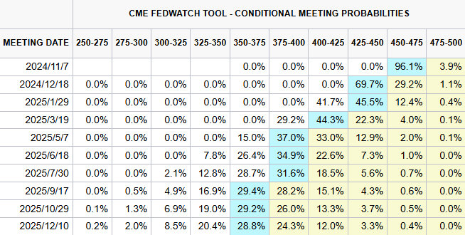 需要注意的是,美联储11月的利率决议因美国大选和冬令时,延后至11月8日周五凌晨3点公布,鲍威尔的新闻发布会将在凌晨3:30举行。