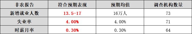 具体来看,市场普遍预期新增就业人数将较上月14.3万人小幅回升至16万人,失业率则与上月持平于4%,时薪月率则从0.5%回落至0.3%,整体预期较为强劲。不过,值得注意的是,投行机构对新增就业人数预期差异较大,高盛预计录得17万人,但花旗则预计仅录得13.5万人。分歧也加剧了此次数据的不确定性,预计数据要引发趋势线行情还需结合失业率以及薪资数据的表现,以下为大致情景影响: