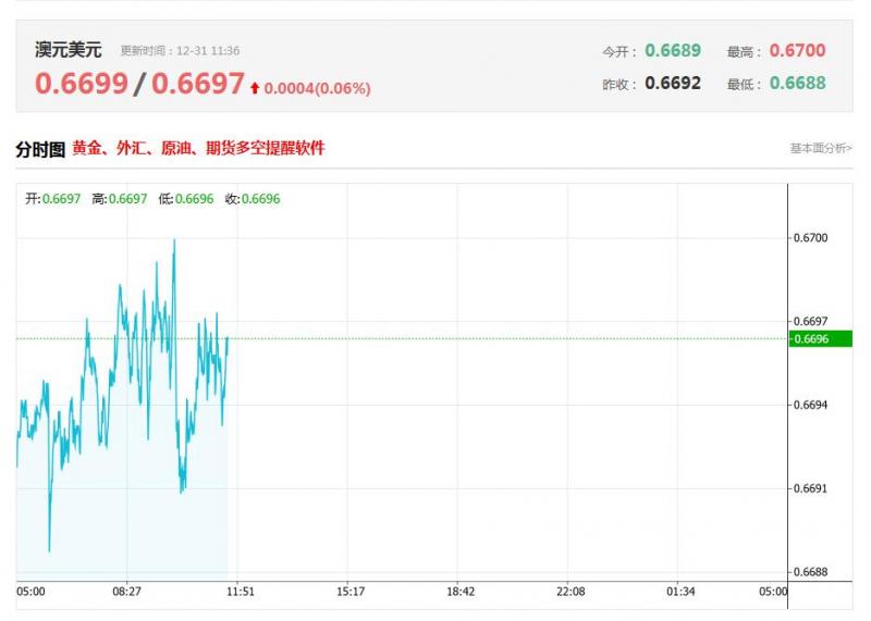 截至目前,澳元/美元上涨0.06%,报0.6697。