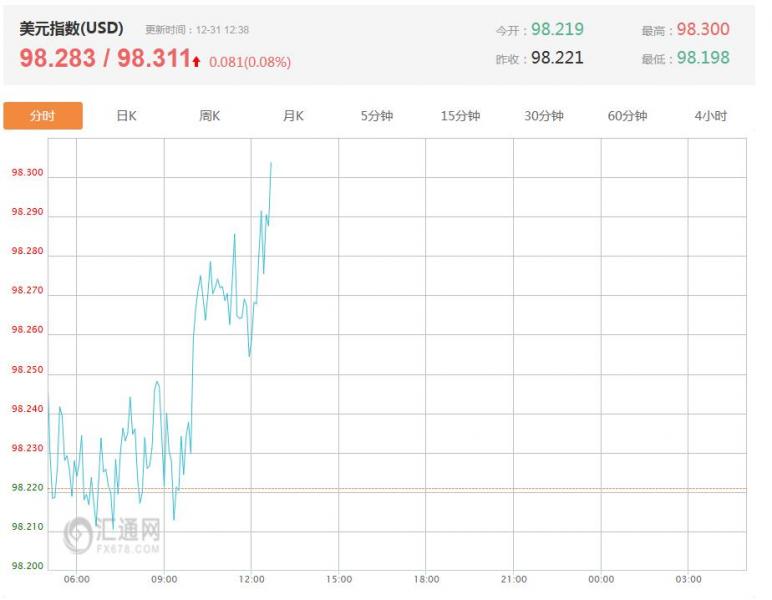 截至目前,美元指数上涨0.08%,报98.311。