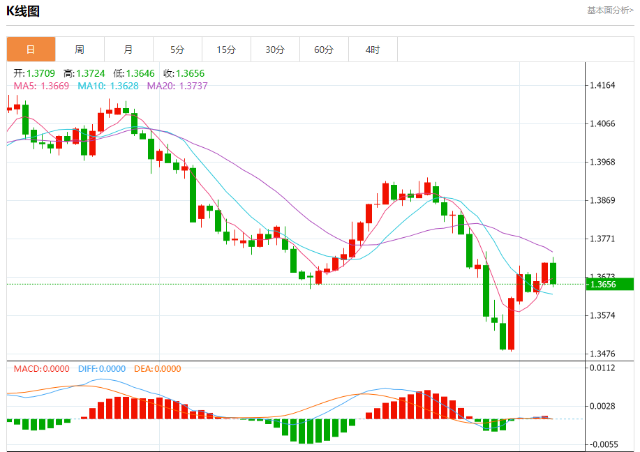 截至目前,美元/加元下跌0.38%,报1.3659。