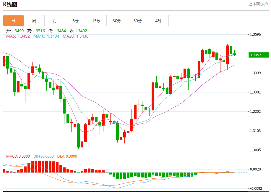 周三盘中,英镑/美元报1.3486,跌幅0.10%。