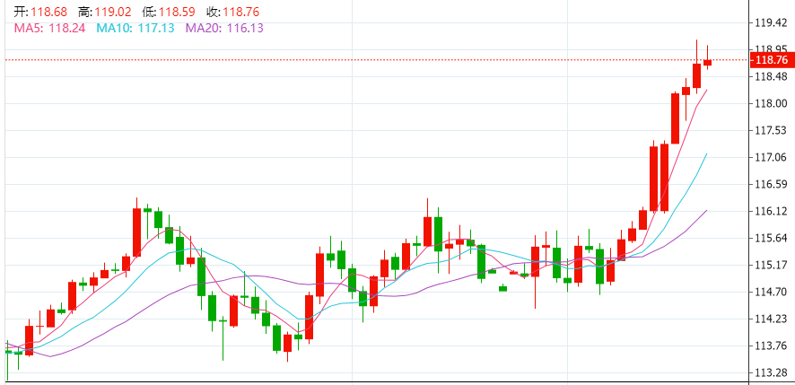 今日预期交易区间在 118.20 支撑位和 119.30 阻力位之间