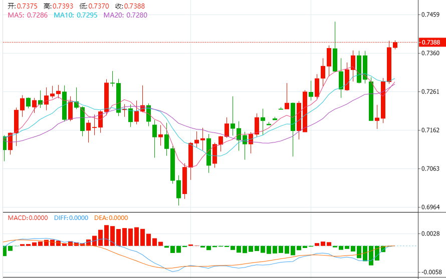 今日预期交易区间在 0.7340 支撑位和 0.7440 阻力位之间