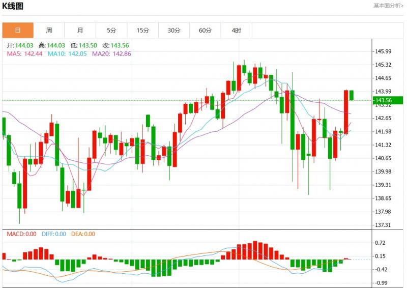 今日分析:看涨,当 143.12 为支撑位,目标定在144.87。
