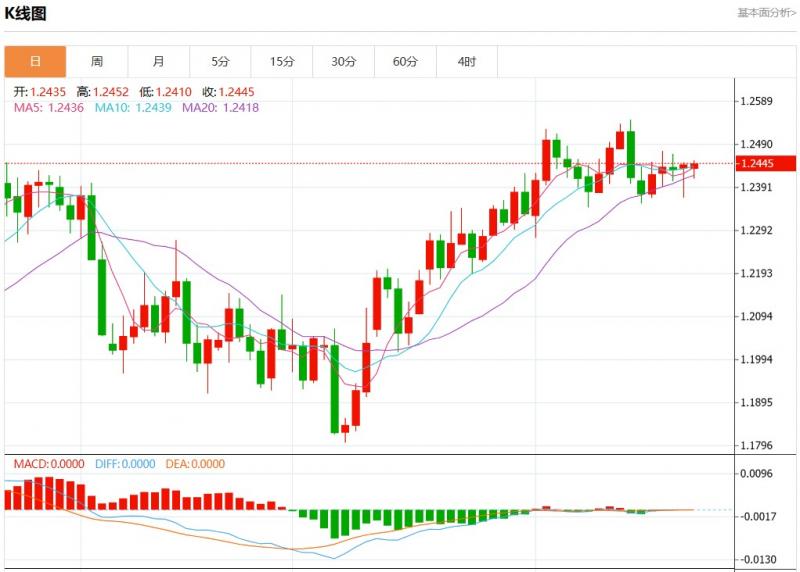 周一盘中,英镑美元报1.2444,涨幅0.12%。