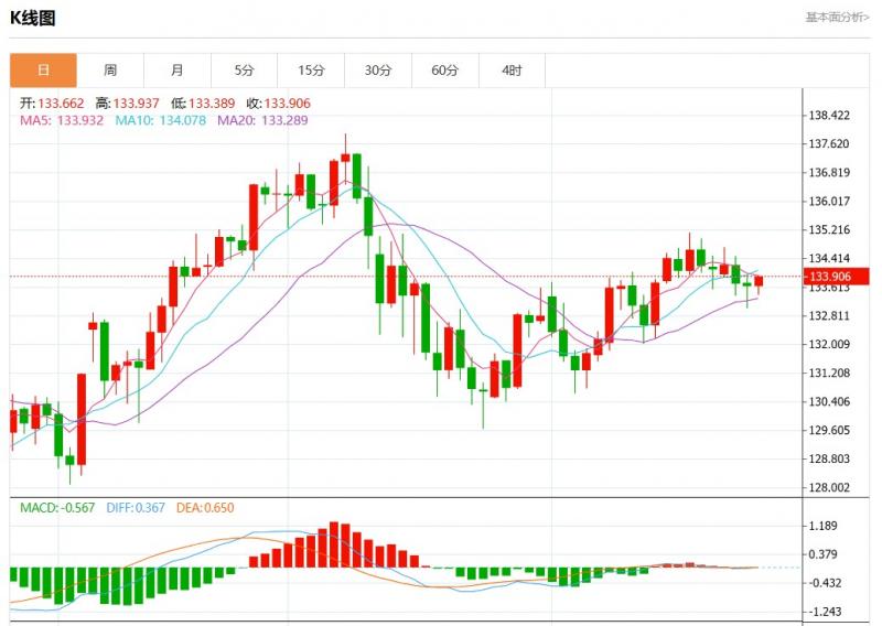 周四盘中,欧元兑美元报1.1049,涨幅0.09%;英镑美元报1.2465,涨幅0.05%;美元兑日元报133.932,涨幅0.18%。