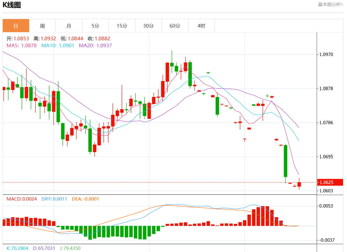 周三欧市盘中,欧元/美元最新报1.0628,日图涨0.09%.