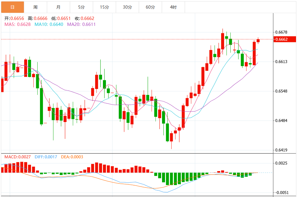 技术分析:澳大利亚元瞄准接近0.6700的三个月高点
