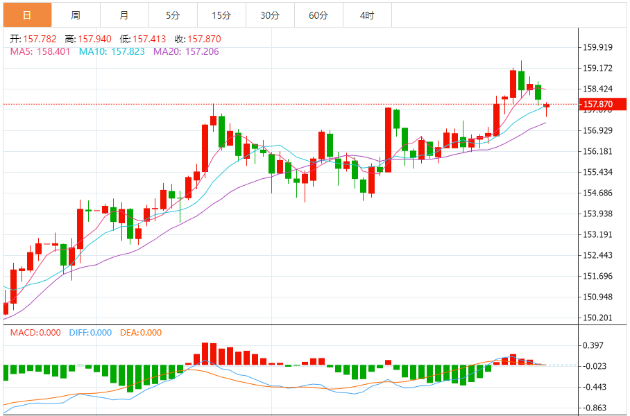周一(1月19日),美元/日元下跌157.894,暂报157.866,跌幅0.12%。