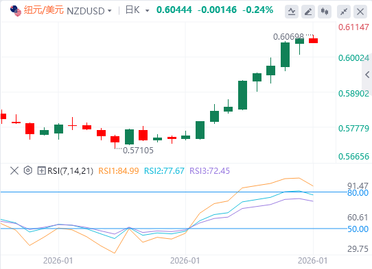 新西兰在2025年12月公布了5200万纽元的贸易顺差,而11月的贸易逆差为1.63亿纽元。这一数字好于预计的3000万纽元盈余。出口从69.9亿纽元增至76.5亿纽元,而进口从上一次的71.5亿新西兰美元攀升至76亿纽元。较强势的贸易头寸可能会在短期内为纽元兑美元提供一些支撑。