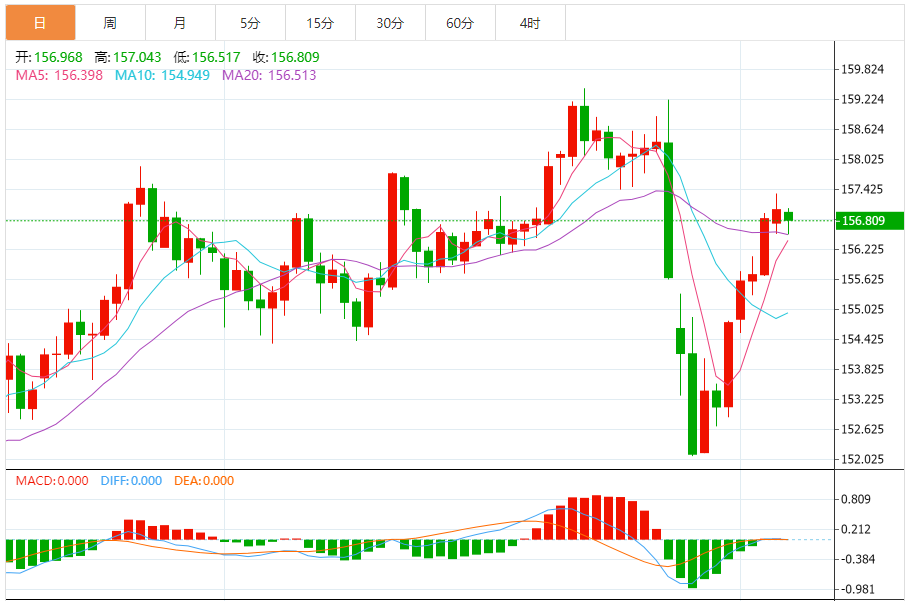 周五(2月6日),美元/日元下跌156.815,暂报156.801,跌幅0.14%。