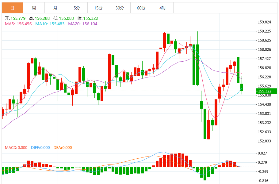 周二(2月10日),美元/日元下跌155.335,暂报155.322,跌幅0.35%。