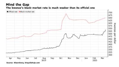 目前,安哥拉外汇短缺已经越来越严重。宽扎的黑市汇率已跌至650宽扎比1美元,比官方汇率约535比1低了近20%。安哥拉天主教大学经济学家gracoso Domingos表示,央行当前“主要关心的是如何维持宽扎的稳定”。