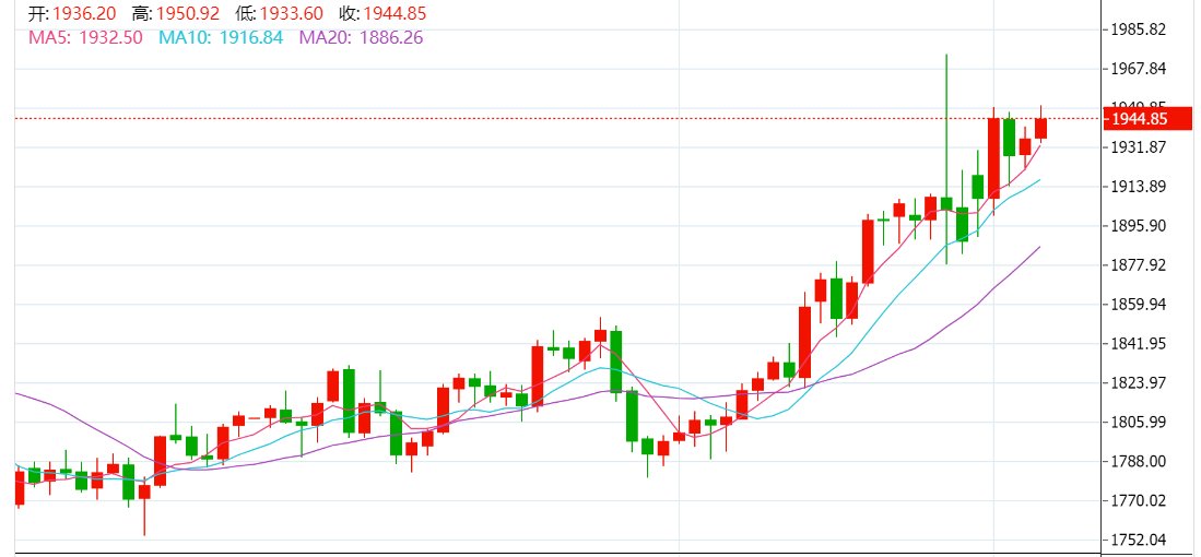 黄金技术面分析:黄金日线级别来看,黄金今日的行情是亚盘回撤之后而欧盘出现冲高,但是欧盘冲高之后未能突破1940这个趋势上的关键抉择点,那么目前的行情只能看成是区间的反复震荡,但是日内的行情走强的情况下,那么今晚美盘的行情如果下跌的话容易出现探底回升的走法,反之如果上升的话就延续性会比较的强,金价本周没有在上周的回落压力下走出下跌,而是继续保持在10日均线支撑上方延续走强,不过目前动力有所减弱,附图指标信号也有所转弱,且反弹也未刷新上周高点,故此仍有回落风险。