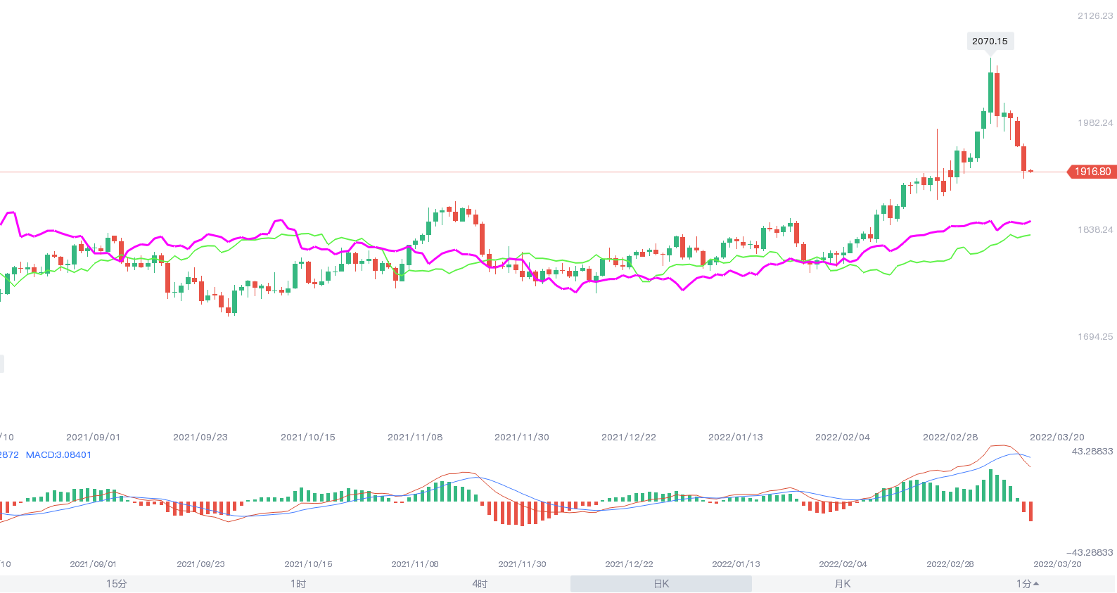 周二现货黄金延续跌势,一度下破1910美元/盎司,创近两周新低,最终收跌1.69%,报1917.81美元/盎司;现货白银失守25美元关口,最终收跌0.68%,报24.85美元/盎司。