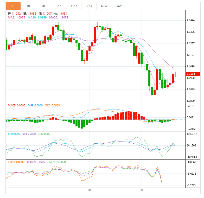技术面:若明显升破目前位于1.0965的10日MA均线,将指引欧元兑美元指向1月低点1.1121。由于MACD形成看涨交叉,且日线RSI仍持稳,欧元最新反弹行情可能延续。
