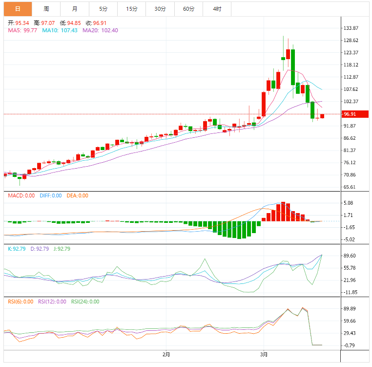 技术面:50日移动均线和此前一周的阻力线,分别在92.20美元和90.45美元附近,限制了黑金的短期下行空间,而复苏走势需要突破上周五触及的107.00美元附近的高点,才能重拾买家信心。