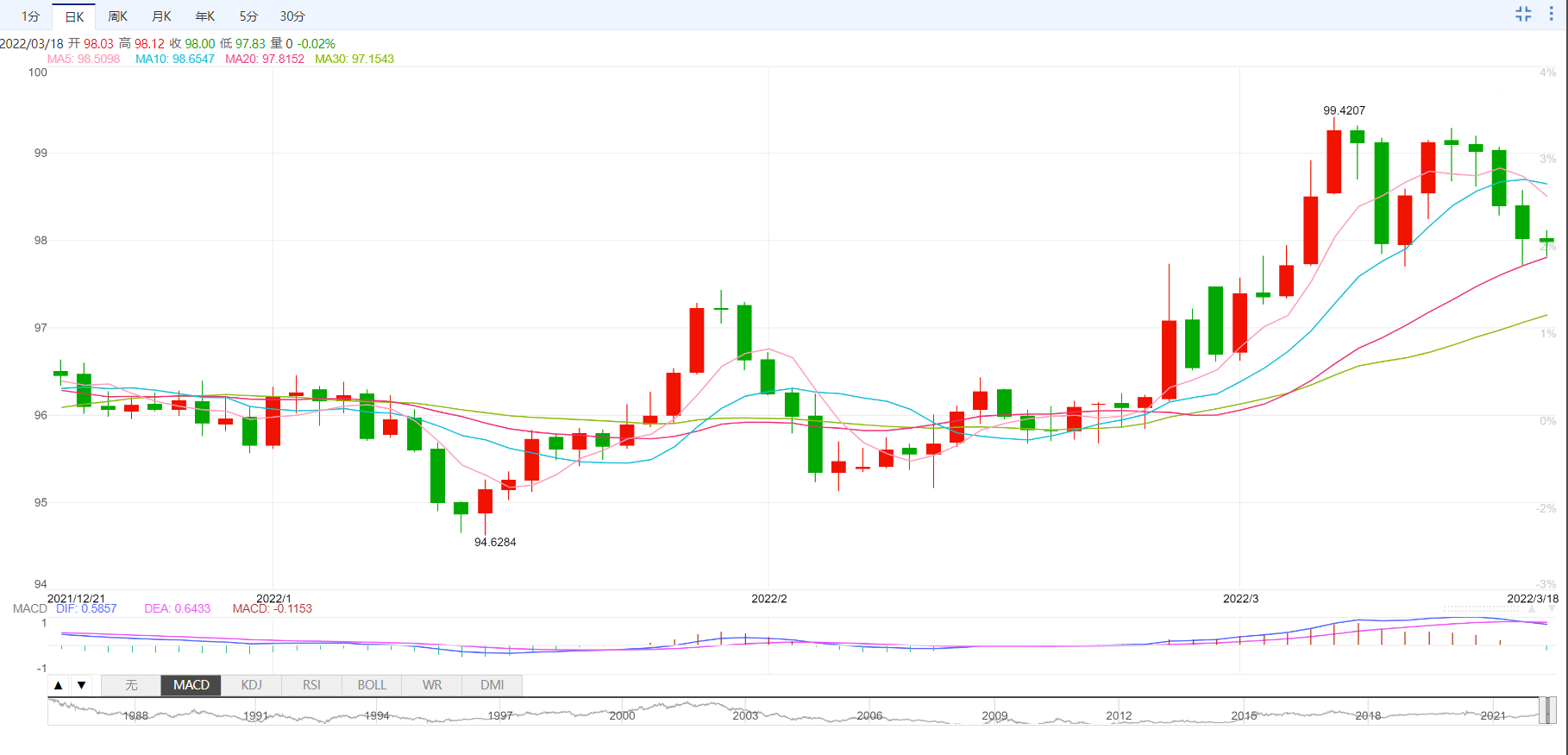 阻力位:98.43 98.85 99.2