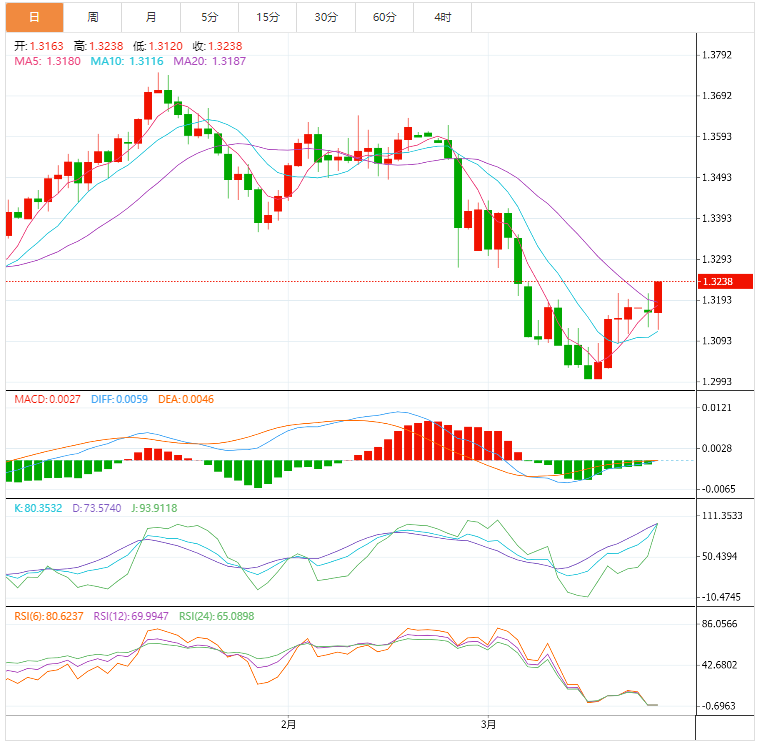 英镑/美元:截止北京时间20:00,英镑/美元上涨,现报1.3244,涨幅0.59%。纽市盘前,英镑兑美元目前在1.3165附近整理日内跌幅。英镑的最新反弹可能与美国国债收益率的回落,以及英国财政大臣里希?苏纳克的言论有关。另一个挑战英镑兑美元空头的因素是市场近期因乌克兰和俄罗斯的消息而产生的乐观情绪,这反过来有利于欧元斯托克50期货和富时100指数温和上涨,也推动美元指数从日高点回落。技术面上,看空英镑兑美元的投资者需要跌破上周二开始的上升趋势线约1.3145水平,才能继续掌控局面。接下来测试50周期移动均线1.3108水平。相反,100周期均线和12天水平阻力区域1.3190-3200将限制英镑兑美元的短期上行。