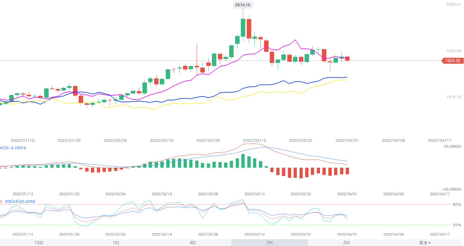 上周五现货黄金震荡下行,最低触及1917.80美元,收跌0.67%,报1924.3美元/盎司;现货白银收跌0.65%,报24.61美元/盎司。