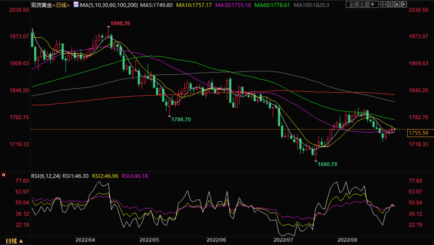 金价可能会随着美鲍威尔周五在杰克逊霍尔发表的评论而起舞,在美国经济活动急剧收缩,以及美国耐用品订单疲软表明整体需求下滑之后,华尔街认为美联储应该放慢加息步伐。美联储政策制定者有证据表明价格压力已经耗尽,全球供应链风险也已大幅降低。因此,美联储可以稍微降低其鹰派基调,直到美国经济活动能够恢复到恢复水平。