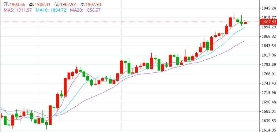 周三(1月18日),现货黄金一度涨近1%并上破1925美元,再创去年4月下旬以来的近九个月高位,但随后下逼1900美元,最终收跌0.22%,报1904.51美元/盎司,已经连跌三日。现货白银升至24.33美元后急挫跌破24美元关口,收跌1.94%,报23.47美元/盎司。