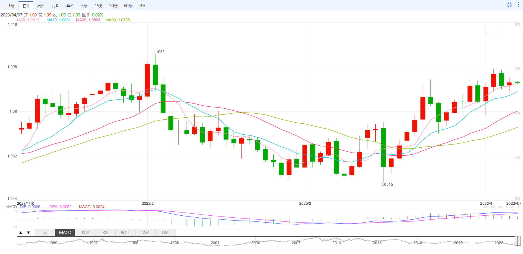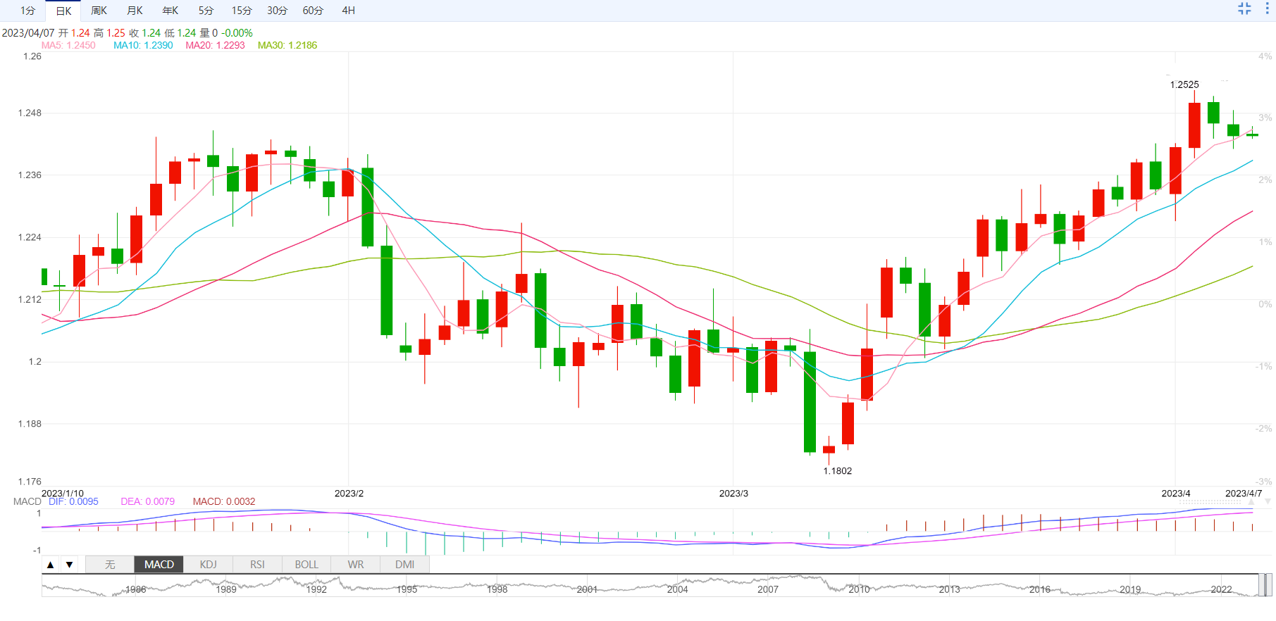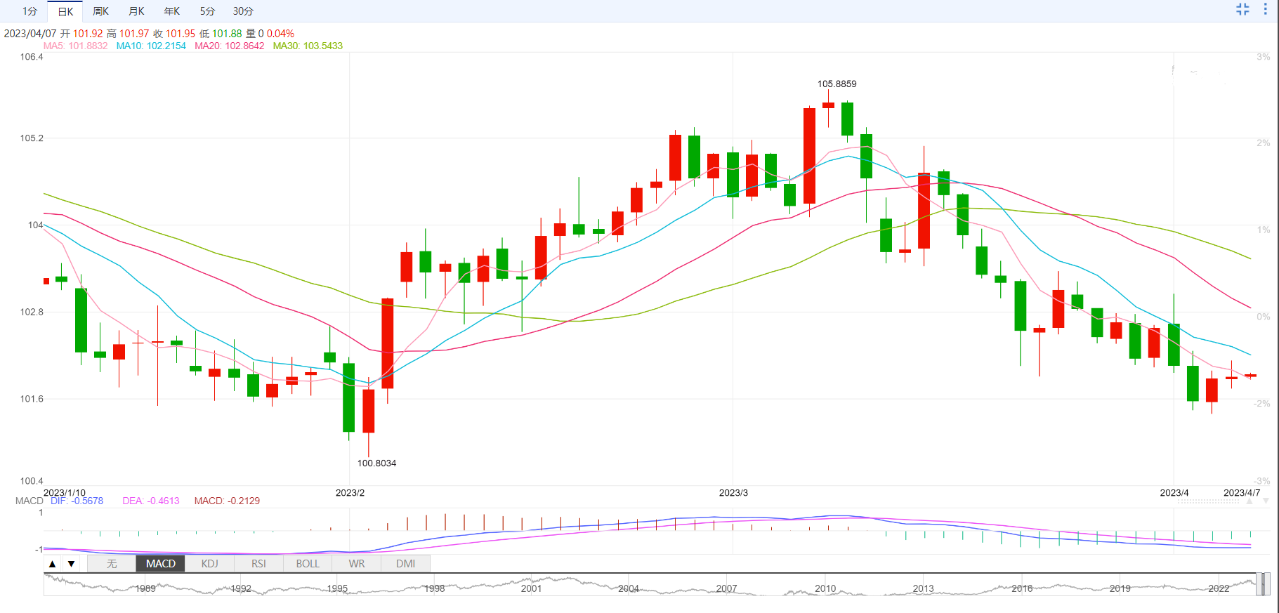 美元指数:截止发稿,美元指数上涨,现报101.94,涨幅0.03%。欧市盘中,低迷的美国数据引发了人们对美联储5月不加息的担忧,并对美元构成压力。然而,同样的美国统计数据引发了经济衰退的忧虑,并为美元提供支撑。由此,美元指数(DXY)在102.00附近小幅上涨。