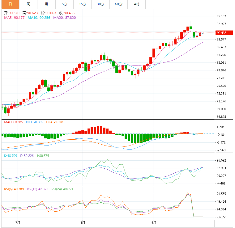 技术面:预计原油价格远高于技术支撑位,200日简单移动平均线(SMA)接近77.00美元,远低于当前价格走势。相对强弱指数(RSI)和移动平均收敛-背离(MACD)指标均稳稳位于超买区域,需要出现重大获利回撤才能恢复指标形态。