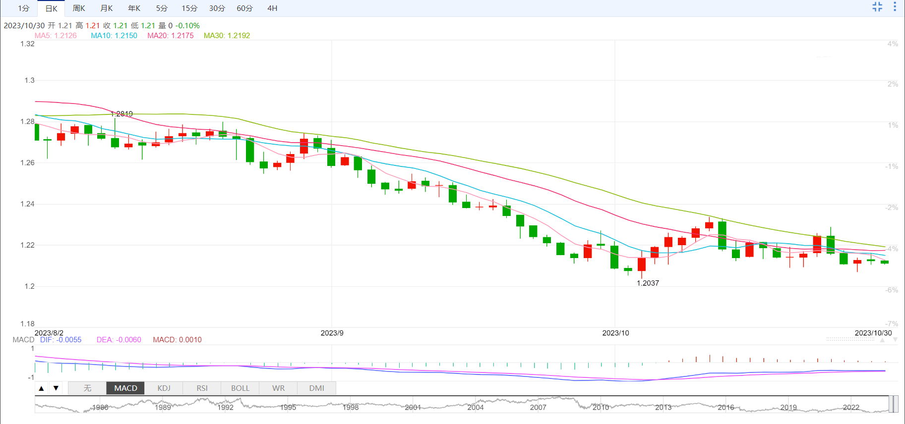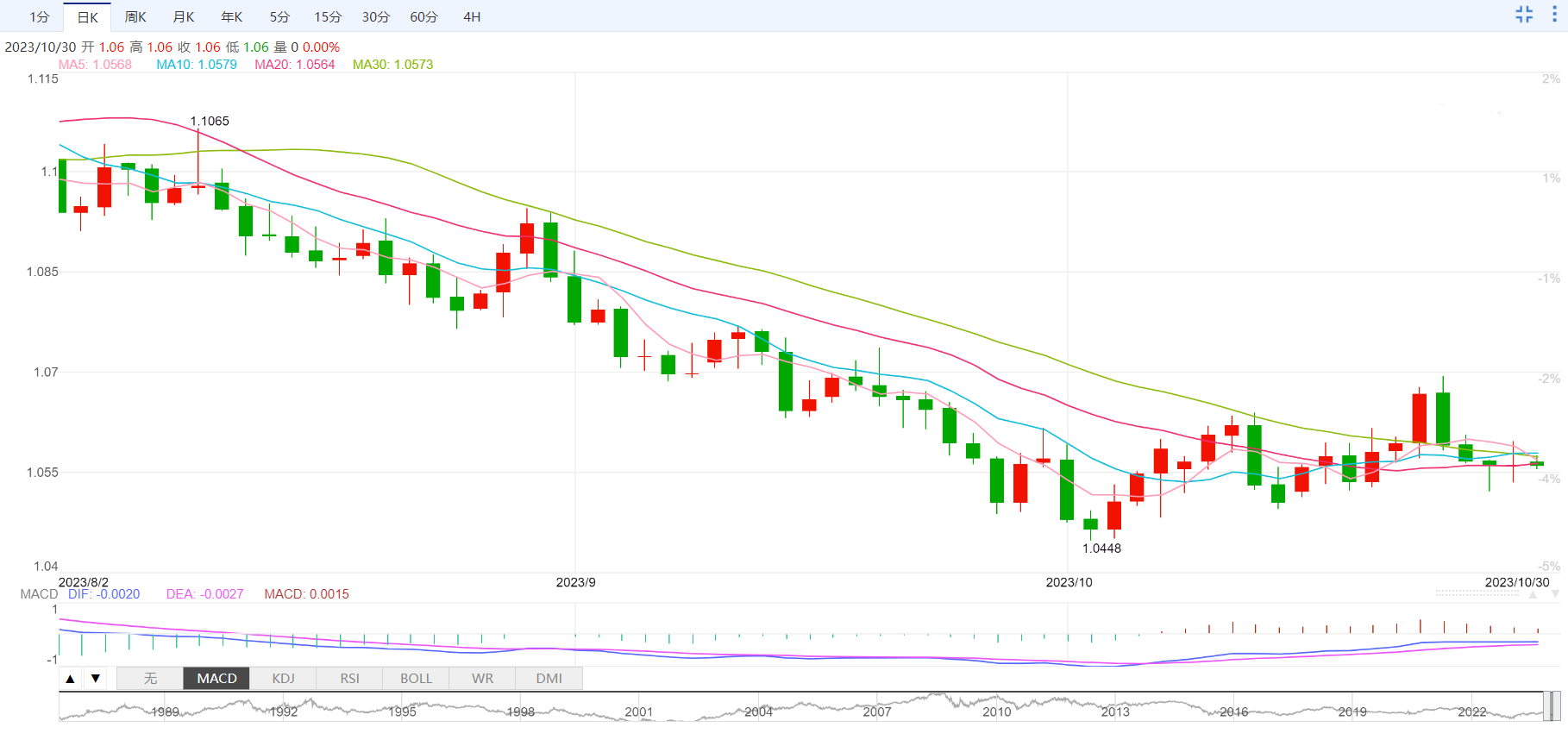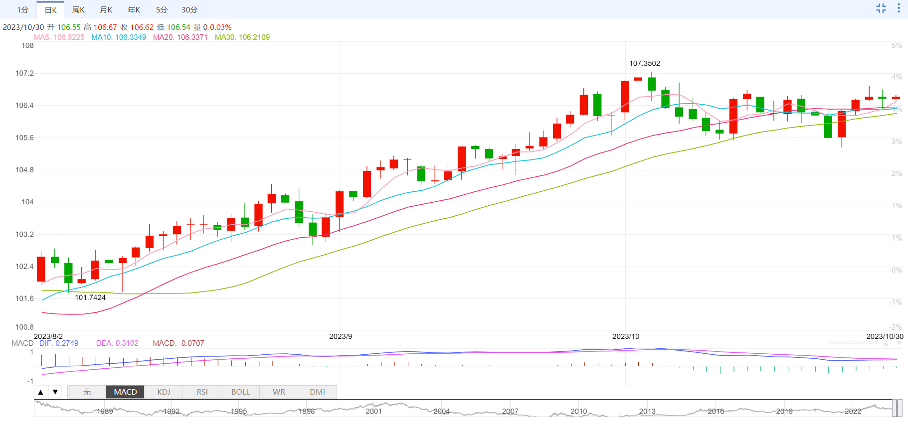 美元指数:截止发稿,美元指数报106.61,涨幅0.03%,最高106.66,最低106.54。美元方面,美联储预计将在周三为期两天的会议结束时维持利率不变。上月底,联准会主席鲍威尔表示,通膨率仍处于过高水准,这提高市场对年底前继续升息的预期。也就是说,联准会利率长期维持在更高水准的说法可能会提振美元,并对欧元/美元货币对构成利空。