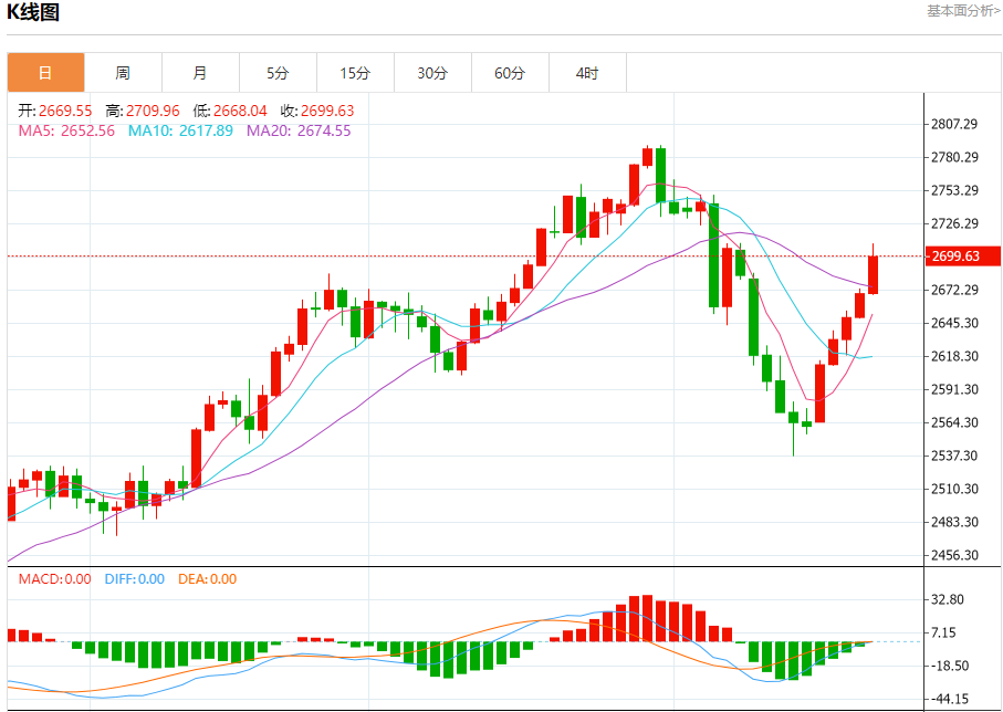 现货黄金:截止北京时间21:20,现货黄金上涨,现报2699.43,涨幅1.12%。纽市盘前,金价持续上涨测试2700.00美元关口,等待更多的看涨偏见测试代表我们下一个积极目标的2710.00美元,提醒您超过该水平将推动价格实现额外收益,达到2790.00美元。