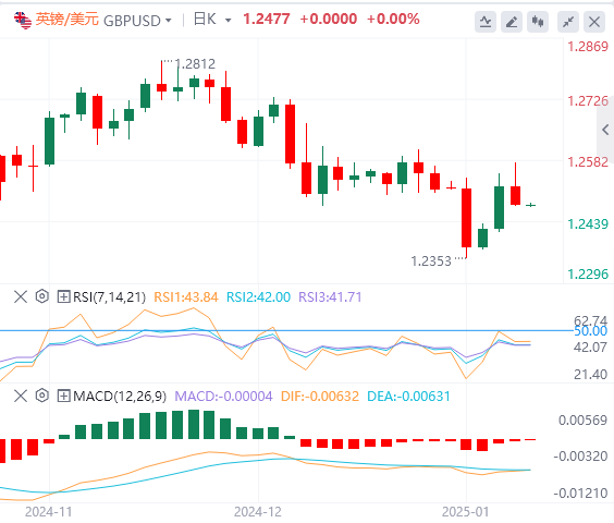 英镑:截止发稿,英镑/美元徘徊于1.2477附近。英镑/美元周二下跌,收报1.2477,跌幅0.35%。英镑竞标者继续努力寻找出价的理由,因为在从1.2350附近的9个月低点连续两天的不温不火的牛市之后,技术性复苏步履蹒跚。在以三个月的连跌结束2024年之后,英镑图表上新的一年开局并不稳固,出价势头在中期低点附近受阻,英镑交易员的数据清单清淡。周三,美国数据发布将再次成为主宰日历,12月ADP就业变化数据和美联储最新的会议纪要均计划在即将到来的美国交易时段发布。技术面上,如果英镑/美元跌破1.2475水平,它将走向下一个支撑位1.2355–1.2370。