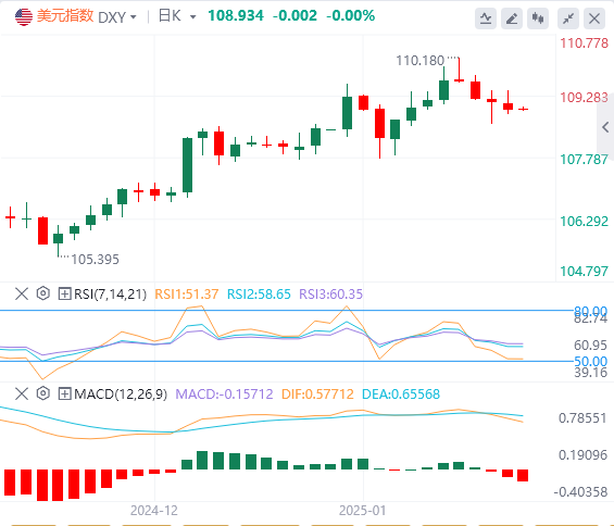 美元指数:截止发稿,美元指数徘徊在108.93附近。本周表现不佳主要源于美国国债收益率下降,这削弱了美元的吸引力,主要是由于 12 月数据疲软。技术面上,如果美元指数低于 109.00 水平,它将朝着最近的支撑位前进,即位于 108.30 – 108.50 区间。
