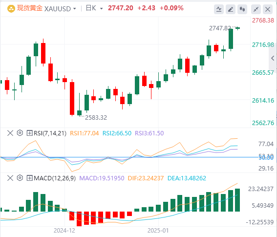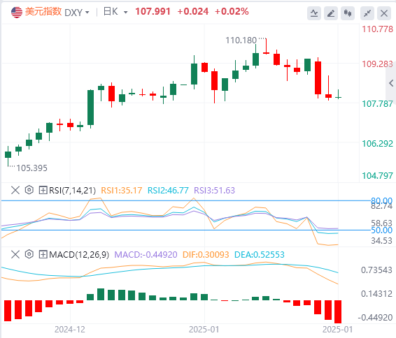 周三亚盘,黄金交投于2747.20附近。美元最初上涨,但正如美元指数所描述的那样,美元转为负值,这是金价的利好因素。特朗普上任第一天就改善了风险偏好,但在他签署一系列行政命令时暗示将对加拿大和墨西哥征收关税后,他突然转为规避风险。根据美元指数的数据,加元和墨西哥比索(MXN)暴跌,因此美元跌至108.79的日高点。尽管如此,贵金属继续走高,在2730美元清除了关键阻力位。此外,美国国债收益率在曲线的腹部和长期端下降,支撑了金价。美国10年期美国国债收益率暴跌5.5个基点(bps)至4.572%。