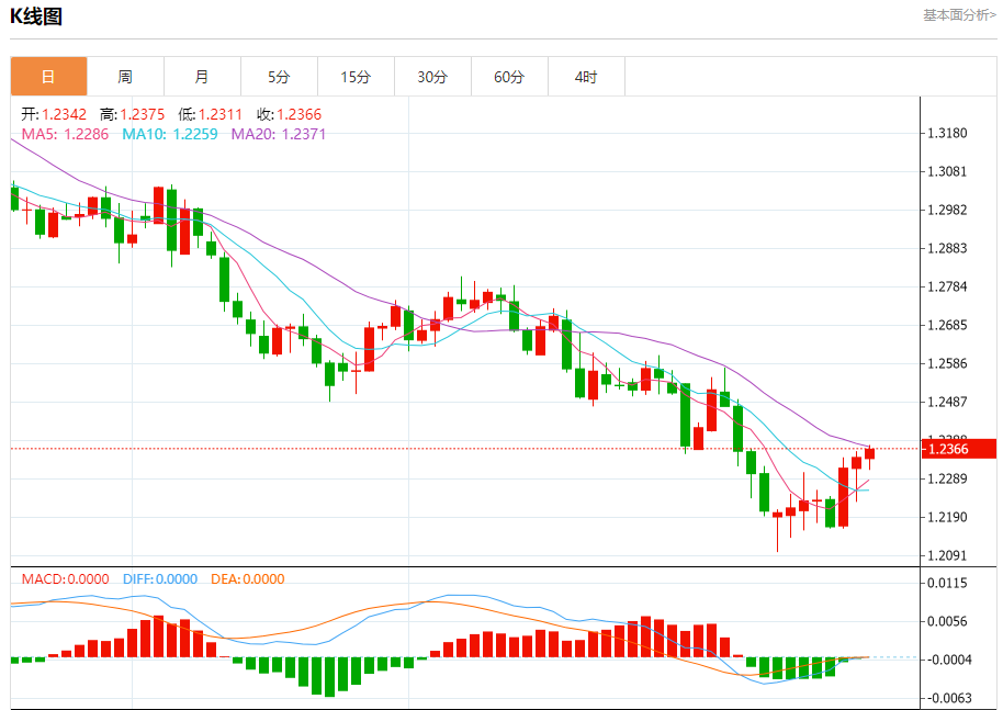 英镑/美元:截止北京时间21:20,英镑/美元上涨,现报1.2367,涨幅0.17%。纽市盘前,GBPUSD价格保持稳定在1.2300美元水平之上,以保持今天积极的情景,这得到EMA50的积极支持,等待收集积极的动力,帮助推动价格实现我们在1.2460美元的下一个主要目标。