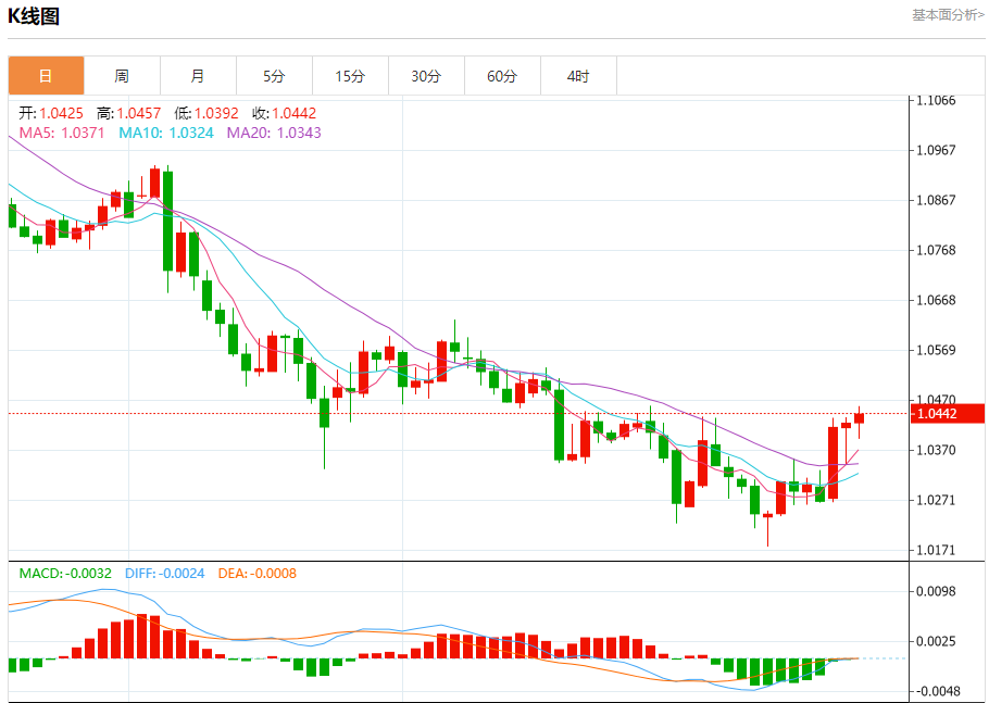 欧元/美元:截止北京时间21:20,欧元/美元上涨,现报1.0443,涨幅0.17%。纽市盘前,自上午以来,欧元兑美元价格没有表现出任何强劲的波动,继续在1.0400美元左右波动,因此,今天的预期看涨趋势没有变化,这取决于价格稳定在1.0325美元以上,提醒您我们的目标从1.0455美元开始,并在触及前一水平后延伸至1.0600美元。