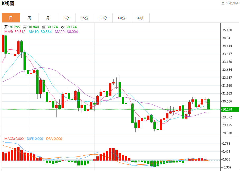 现货白银:截止北京时间21:20,现货白银下跌,现报30.179,跌幅2.02%。纽市盘前,银价在轻微的负面影响下波动至30.63美元下方,强化了日内继续看跌趋势的预期,提醒您我们的目标从30.05美元开始,并在突破前一水平后延伸至29.63美元。