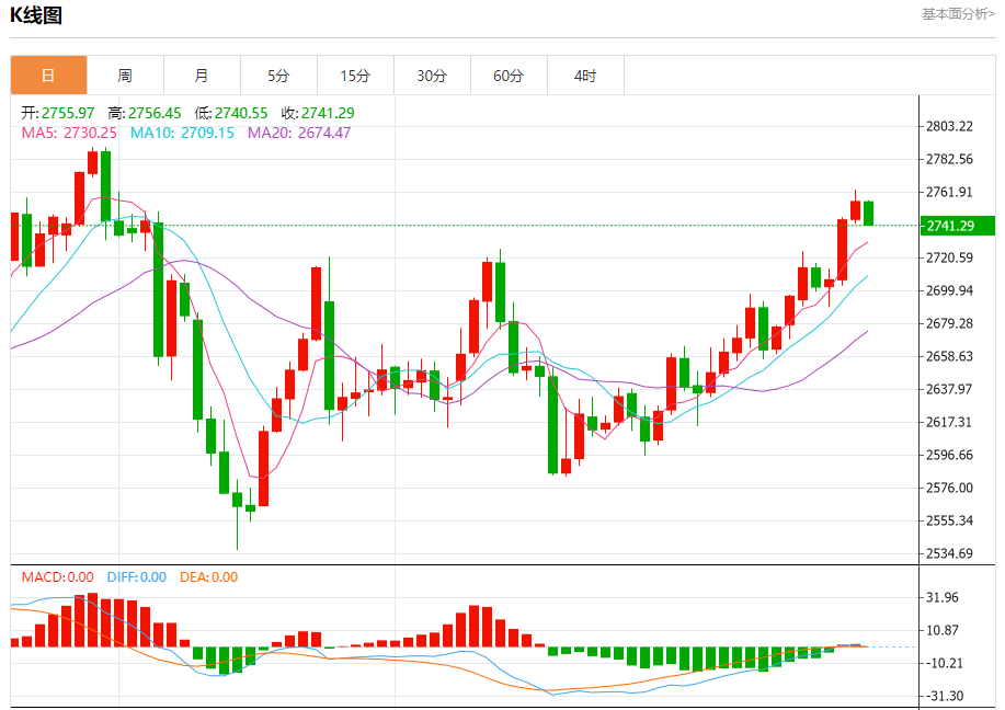 现货黄金:截止北京时间21:20,现货黄金下跌,现报2741.24,跌幅0.54%。纽市盘前,黄金价格在看涨通道的阻力线附近徘徊,仍然低于该线,以保持今天看跌趋势的有效性和活跃性,等待走向2707.00美元作为下一个主要目标。