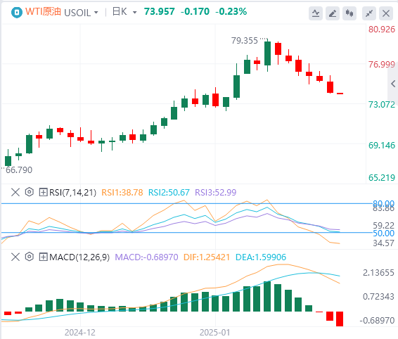 周五亚盘,原油交投73.95附近。美国总统唐纳德·特朗普敦促沙特阿拉伯和石油输出国组织(OPEC)降低油价后,WTI价格延续跌势。特朗普提议的关税和能源政策的不确定性可能会拖累WTI价格。特朗普周四表示,他将要求沙特阿拉伯和欧佩克降低油价。特朗普在瑞士达沃斯世界经济论坛上的演讲中说:“我还将要求沙特阿拉伯和欧佩克降低油价。”