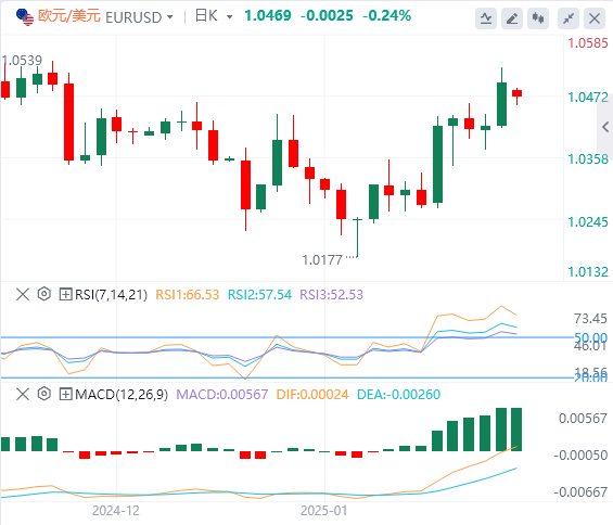 欧元/美元上周上涨超过2%,连续第二次收于积极区域。该货币对周一早盘回调,略高于1.0450。