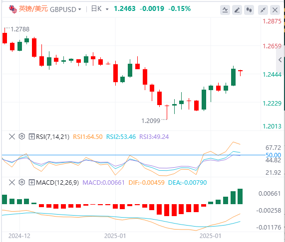 英镑/美元周五录得显着涨幅,上周上涨约2.5%。该货币对在欧洲早盘承受适度的看跌压力,波动于1.2450附近。