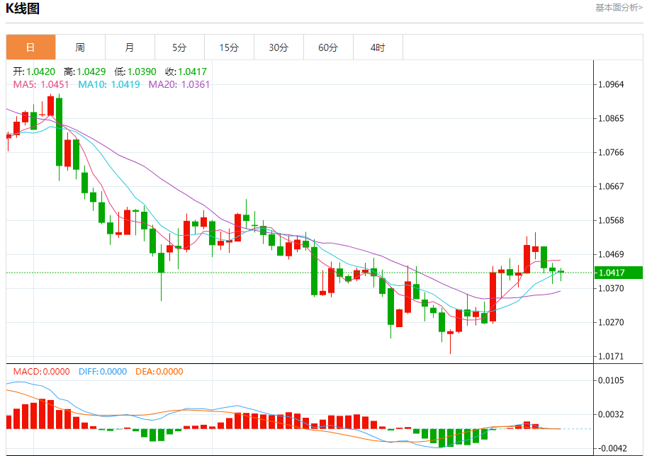 ⑧欧元/美元汇率在政策会议前接近五周高点1.0522,技术指标显示短期可能进一步反弹;