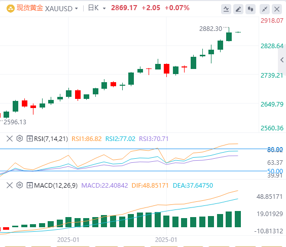 周四亚盘,黄金交投于2865.17附近。金价周二再创历史新高至2845.30美元,为连续四个交易日刷新历史高点,收报2841.85美元,受投资者寻求避险资产推动,此前中国针对美国总统特朗普的关税措施采取了报复性关税措施。另外,美国12月职位空缺创14个月来最大降幅,也拖累美元和美债收益率下跌,给金价提供上涨动能。投资者的焦点现在转向周三的ADP就业报告、周五的就业报告以及多位美联储官员的讲话。
