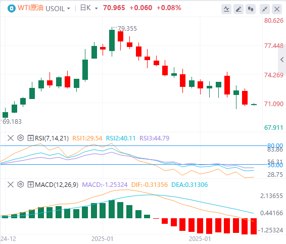 技术面:由于交易员关注 EIA报告,该报告显示原油库存比前一周增加了870万桶,因此价格有所回落。跌破70.00美元水平将推动 WTI 原油跌至下一个支撑位67.00美元–67.50美元。