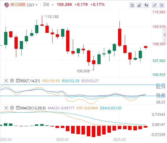 美元指数:截止发稿,美元指数徘徊在108.29附近本周美国1月的CPI数据将揭示通胀压力是否依旧强劲。若CPI数据显示美国经济通胀有所复苏,这可能会减少市场对美联储降息的预期,从而支撑美元。与此同时,美联储主席鲍威尔的国会发言将成为市场关注的焦点。市场普遍预计,美联储今年可能会降息两次,而如果鲍威尔在发言中坚持鹰派立场,可能会迫使市场调整其降息预期,从而支撑美元。此外,市场还将看到美国零售销售和生产者价格指数(PPI)的数据,这些数据如果表现强劲,可能进一步支持美元的上涨。在本周的经济事件中,鲍威尔的发言和CPI数据无疑将对美元产生重要影响。技术面上,美元指数最近的阻力位位于108.30–108.50区间。突破108.50水平将推动美元指数走向下一个阻力位109.20–109.40。