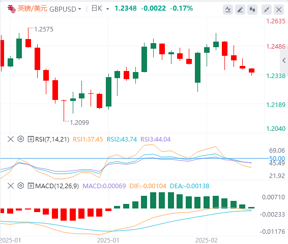 英镑/美元周一连续第三个交易日下跌。该货币对努力恢复牵引力,并在1.2350附近的负值区域交易。