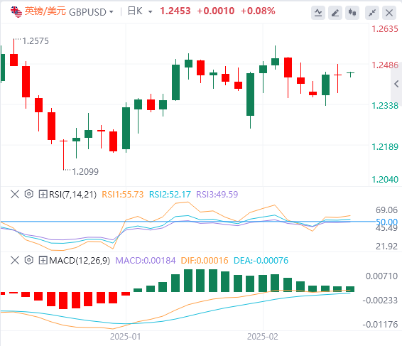 英镑:截止发稿,英镑/美元徘徊于1.2453附近。英镑/美元周三下跌,收报1.2443,跌幅0.02%。因为英镑交易员等待英国最新的国内生产总值(GDP)增长数据。美国消费者价格指数(CPI)通胀在1月份加速,市场将关注周四的美国生产者价格指数(PPI),以寻找进一步通胀因素转嫁给消费者的迹象。技术面上,英镑/美元最近的支撑位位于1.2355–1.2370区间。跌破该水平将推动英镑/美元跌至下一个支撑位1.2250–1.2265。