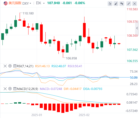 2月13日,北京时间周四亚市早盘,美元指数徘徊在107.94附近。周三,美元指数亚盘欧盘维持震荡,在全线超预期的1月CPI数据公布后,美元指数短线升逾50点,最终收涨0.05%,报107.98。基准的10年期美债收益率收报4.6290%,对货币政策更敏感的两年期美债收益率收报4.3570%。尽管高于预期的CPI数据给金市带来了压力,现货黄金在数据公布后触及日内最低点2864.14,但因特朗普可能即将签署对等关税行政令,黄金最终收复日内全部跌幅,最终收涨0.23%,报2903.86美元/盎司。现货白银最终收涨1.27%,报32.20美元/盎司。因消息人士表示美国原油库存增加,油价周三走跌。WTI原油收跌0.99%,报73.13美元/桶;布伦特原油收涨1.03%,报76.83美元/桶。