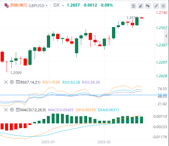 美元指数:截止发稿,美元指数徘徊在106.45附近。地投资者权衡美联储(Fed)的政策立场以及美国总统唐纳德·特朗普宣布的最新贸易措施,特朗普确认药品和半导体进口将自四月起面临25%的关税。截至发稿时,美元仍在107.00以上,但难以确立明确的方向。技术面上,如果美元指数跌破106.50水平,它将向最近的支撑位移动,即位于105.50–105.70区间。